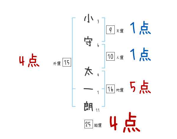 地運![]() | 小守太一朗さんの地運は16画の5つ星!人望が厚く大きく発展する。逆転成功が見える。 個性を表す基礎的な運勢です。性格形成や対人関係、行動力など家庭環境に影響されます。主に誕生してから20歳くらいまでの若年期の運勢を表します。 |