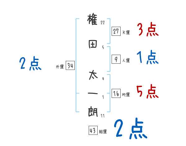 権田太一朗さんの画数の鑑定結果