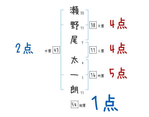 瀬野尾太一朗さんの画数の鑑定結果