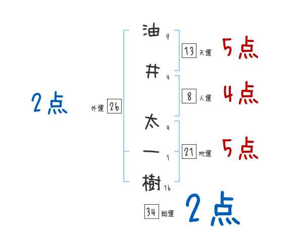 総運![]() | 油井太一樹さんの総運は34画の2つ星!独創性に優れるが、自尊心が強く災難に注意しましょう。 あなたの人生を表す1番重要な運勢です。生涯を通じて影響する総合運となり、主に50歳以降の晩年期に影響を及ぼします。 |