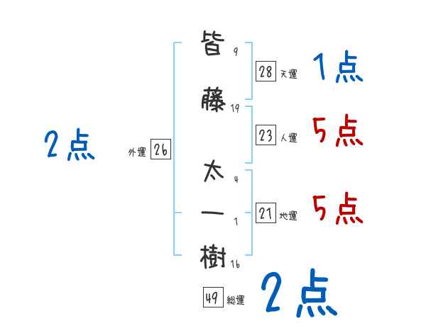皆藤太一樹さんの外運は26画の2つ星