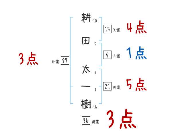 天運![]() | 耕田太一樹さんの天運は15画の4つ星!人徳があり出世する。順調に物事を進め円満な人生。 家系が持つ宿命的な運勢を表します。祖先から受け継いだ苗字ですので自分の力が及びません。家柄を象徴します。 |