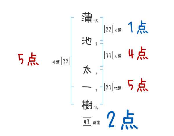 蒲池太一樹さんの画数の鑑定結果