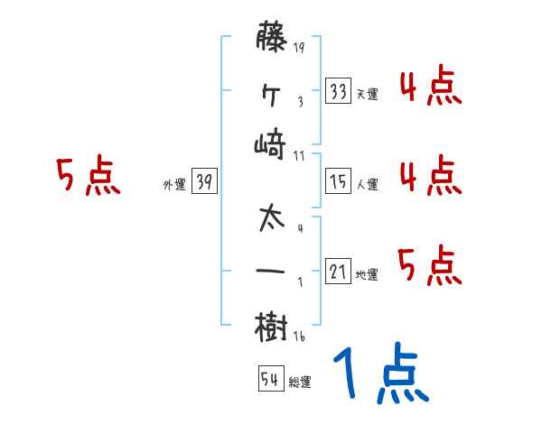 藤ヶ﨑太一樹さんの画数の鑑定結果