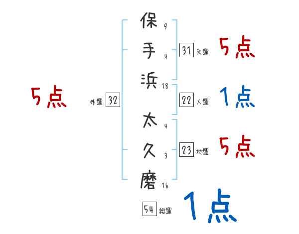 保手浜太久磨さんの画数の鑑定結果