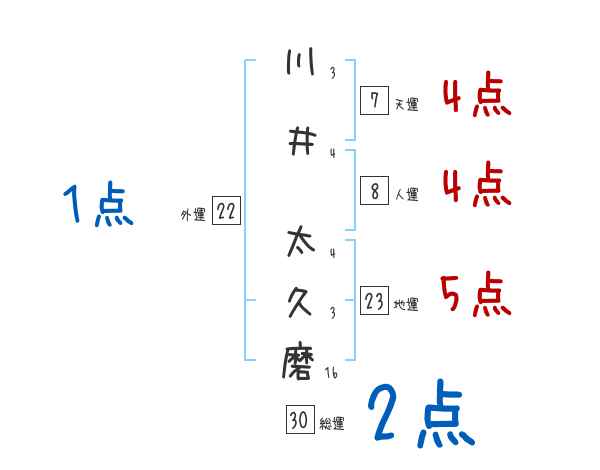 川井太久磨さんの画数の鑑定結果