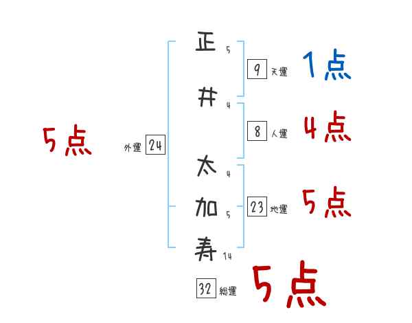 正井太加寿さんの画数の鑑定結果