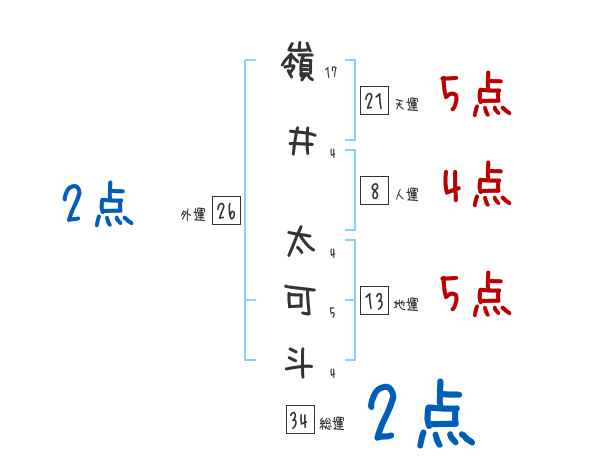 嶺井太可斗さんの画数の鑑定結果