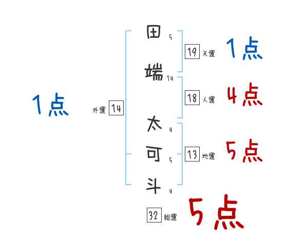 田端太可斗さんの画数の鑑定結果