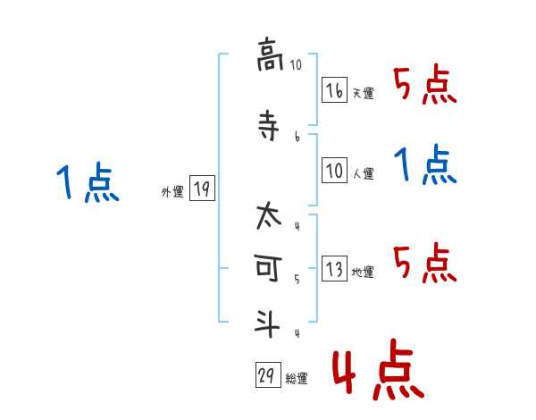 高寺太可斗さんの画数の鑑定結果