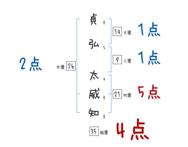 天運![]() | 貞弘太威知さんの天運は14画の1つ星!人に対して優しいがストレスを溜め込みがち。人間関係のトラブルを避けるよう気をつけましょう。 家系が持つ宿命的な運勢を表します。祖先から受け継いだ苗字ですので自分の力が及びません。家柄を象徴します。 |