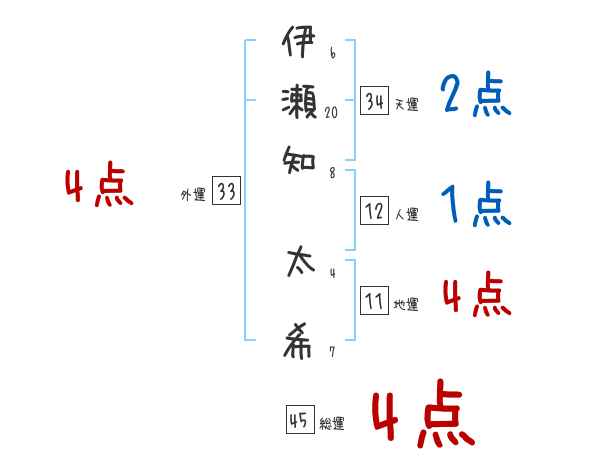 伊瀬知太希さんの画数の鑑定結果