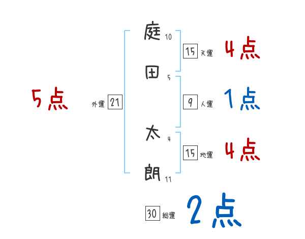 庭田太朗さんの画数の鑑定結果