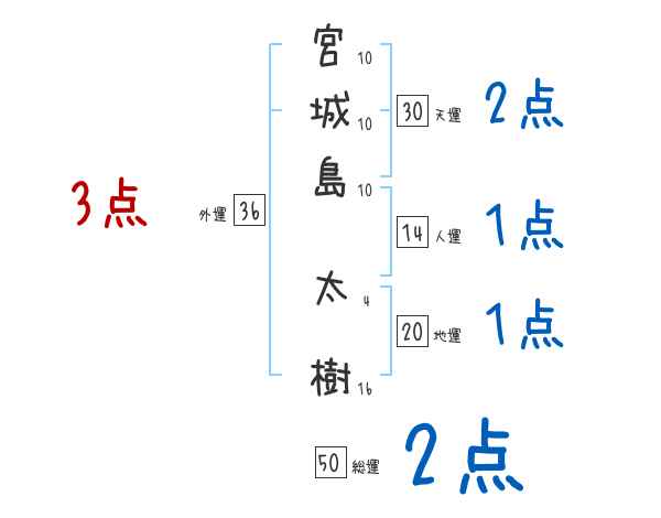 宮城島太樹さんの画数の鑑定結果
