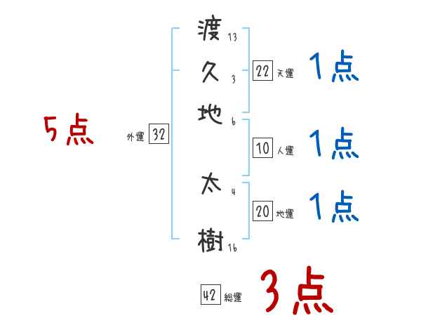 渡久地太樹さんの画数の鑑定結果