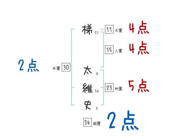 天運![]() | 梯太維史さんの天運は11画の4つ星!着実に富や地位を得る幸運な人生。 家系が持つ宿命的な運勢を表します。祖先から受け継いだ苗字ですので自分の力が及びません。家柄を象徴します。 |