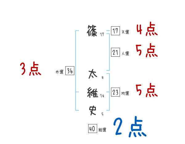 篠太維史さんの画数の鑑定結果