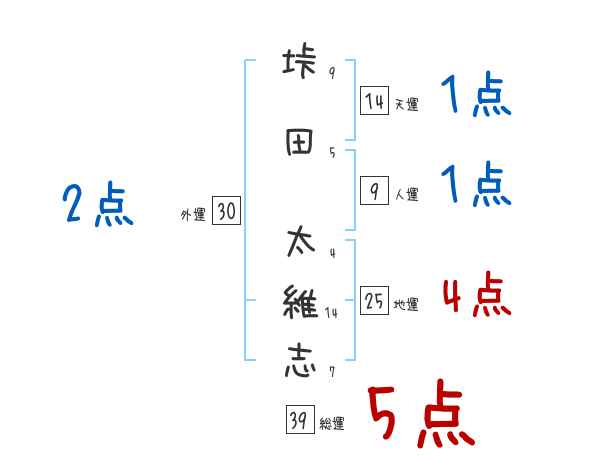 天運![]() | 垰田太維志さんの天運は14画の1つ星!人に対して優しいがストレスを溜め込みがち。人間関係のトラブルを避けるよう気をつけましょう。 家系が持つ宿命的な運勢を表します。祖先から受け継いだ苗字ですので自分の力が及びません。家柄を象徴します。 |