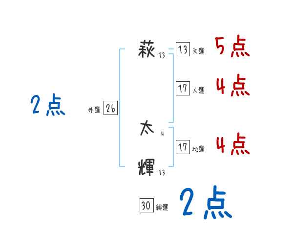 萩太輝さんの画数の鑑定結果