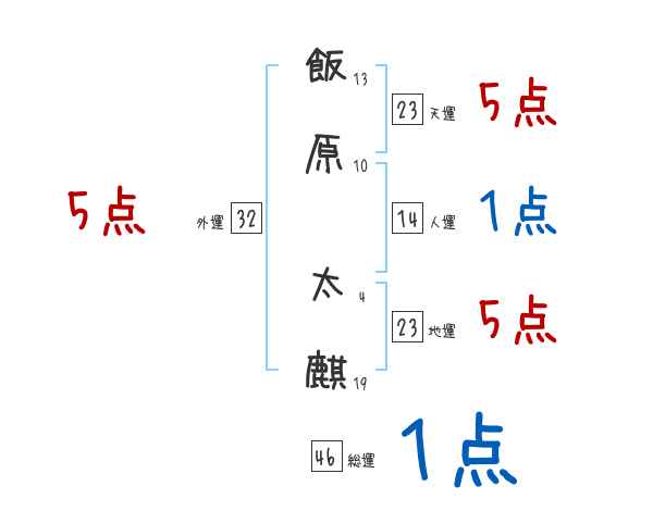 飯原太麒さんの画数の鑑定結果