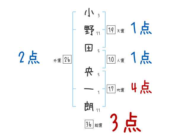 小野田央一朗さんの画数の鑑定結果