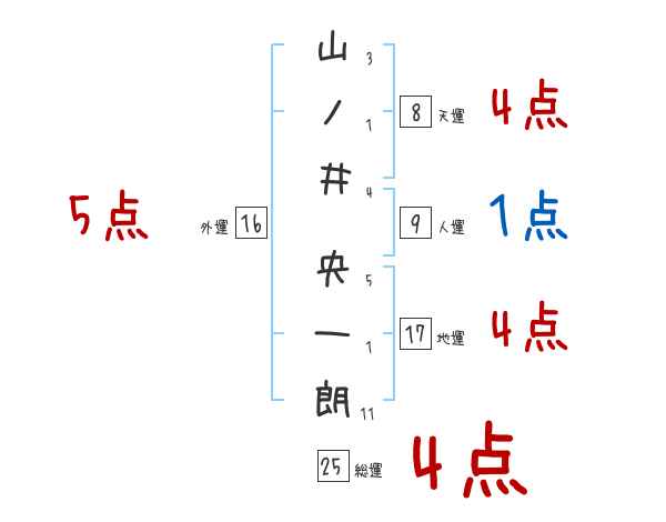 山ノ井央一朗さんの画数の鑑定結果