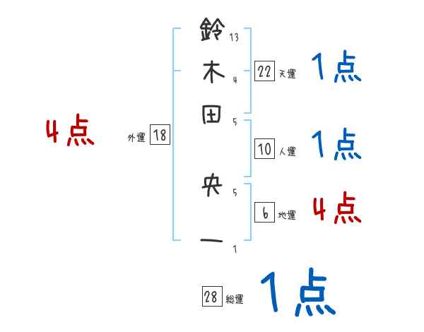 鈴木田央一さんの画数の鑑定結果