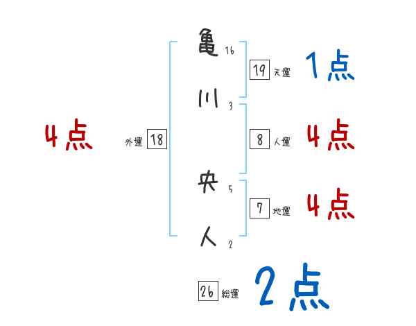 亀川央人さんの画数の鑑定結果