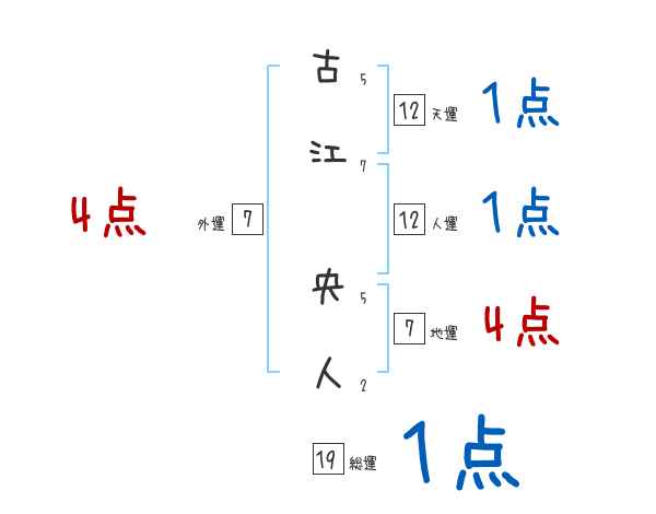 外運![]() | 古江央人さんの外運は7画の4つ星!強い意志や信念を持ち独立心が強い。自立する。 生活面を象徴する運勢です。外部から受ける影響力を表し、結婚運、家庭運や職場、環境への順応性を表します。 |