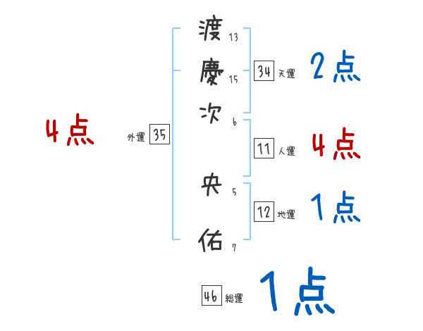 渡慶次央佑さんの画数の鑑定結果