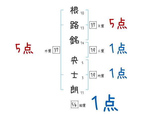 根路銘央士朗さんの画数の鑑定結果