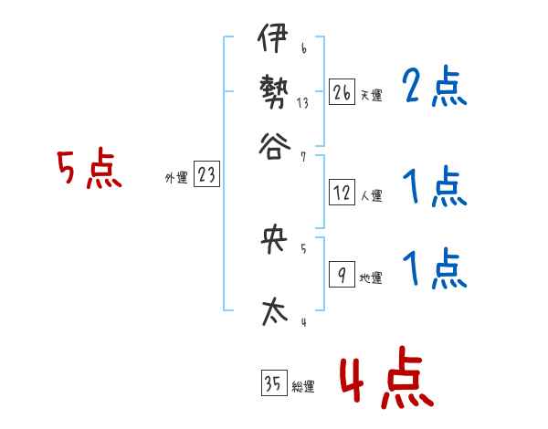 伊勢谷央太さんの画数の鑑定結果