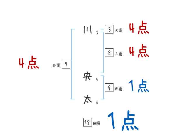 川央太さんの画数の鑑定結果