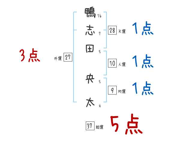 鴨志田央太さんの画数の鑑定結果