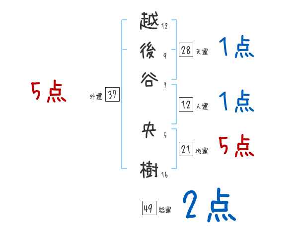 越後谷央樹さんの画数の鑑定結果