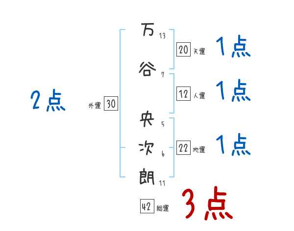 総運![]() | 万谷央次朗さんの総運は42画の3つ星!病気に注意。多芸であるが消極的でおとなしい。 あなたの人生を表す1番重要な運勢です。生涯を通じて影響する総合運となり、主に50歳以降の晩年期に影響を及ぼします。 |