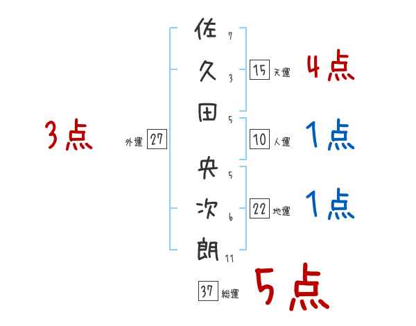 佐久田央次朗さんの画数の鑑定結果