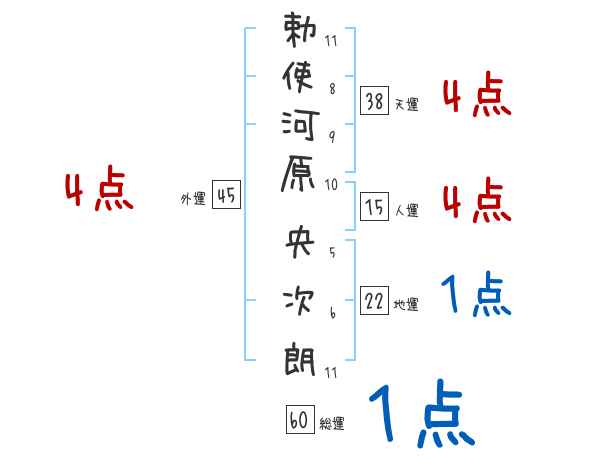 勅使河原央次朗さんの画数の鑑定結果