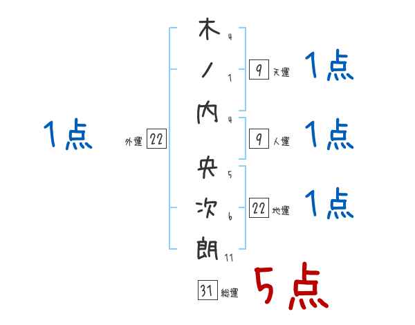 木ノ内央次朗さんの画数の鑑定結果