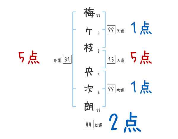梅ヶ枝央次朗さんの画数の鑑定結果