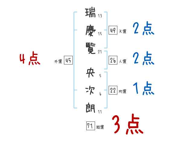 瑞慶覧央次朗さんの外運は45画の4つ星