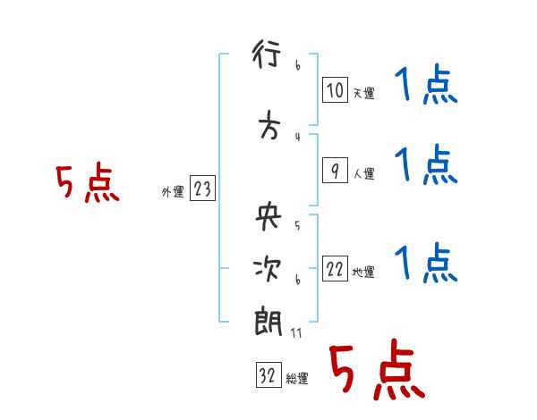 行方央次朗さんの画数の鑑定結果