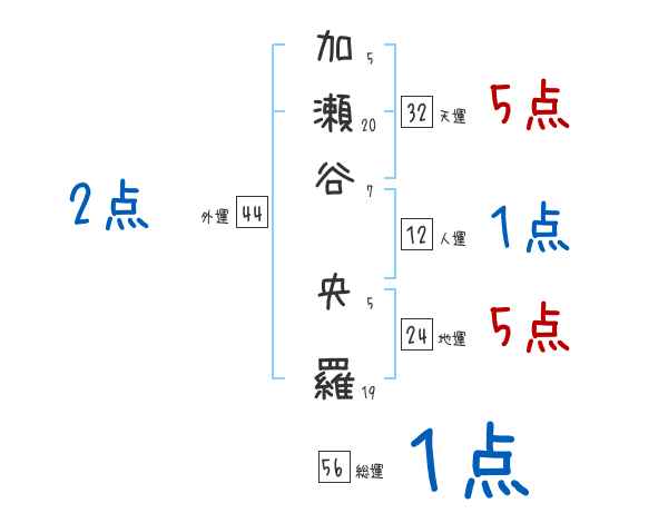 加瀬谷央羅さんの画数の鑑定結果