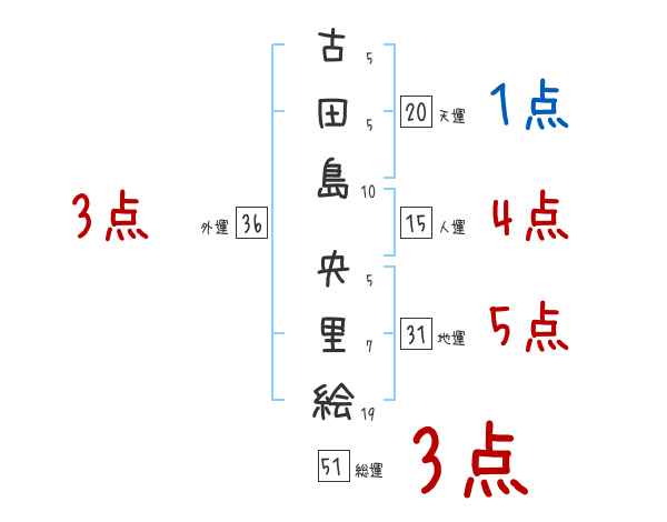 古田島央里絵さんの画数の鑑定結果