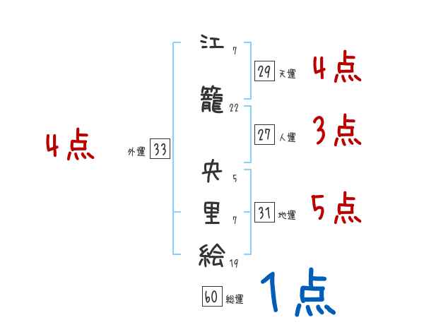 江籠央里絵さんの画数の鑑定結果
