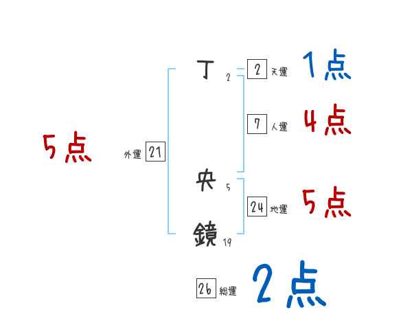 丁央鏡さんの画数の鑑定結果