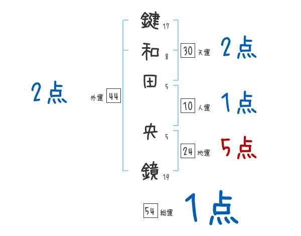 天運![]() | 鍵和田央鏡さんの天運は30画の2つ星!浮き沈みの激しさに注意しましょう。 家系が持つ宿命的な運勢を表します。祖先から受け継いだ苗字ですので自分の力が及びません。家柄を象徴します。 |