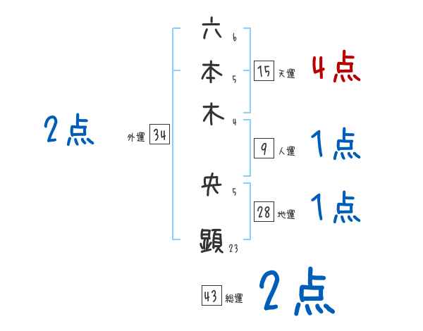 六本木央顕さんの画数の鑑定結果
