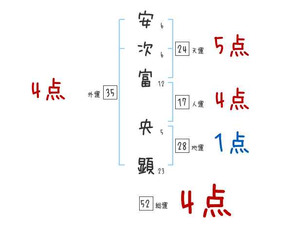 安次富央顕さんの画数の鑑定結果