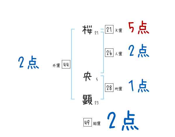 桜央顕さんの画数の鑑定結果
